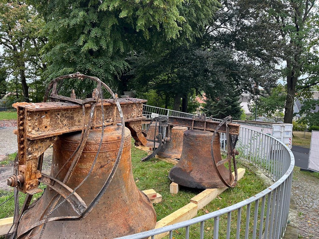 Nach einer Prüfung und der Freigabe des Kirchturmes durch den Statiker am frühen Morgen, begannen zwei Industriekletterer mit Unterstützung zweier mobiler Kräne, die Glocken der Großröhrsdorfer Kirche freizulegen. Es musste Geröll aus dem Weg geräumt und die Glockenträger mit dem Winkelschleifer herausgetrennt werden. Die größte Glocke wurde zuerst geborgen. Noch am Kran hängend wurde deutlich, dass die 4 Stahlglocken aus dem Jahr 1919 durch die Hitze zerstört wurden, in der größten Glocke klafft ein großes Loch. Es konnten alle Glocken geborgen werden und die Sicherheit in der Ruine somit erheblich erhöht werden.